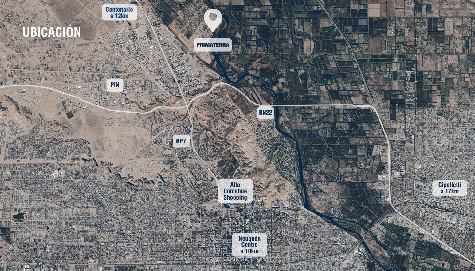 Ubicado a solo 10 minutos del centro de Neuquén, Costa Prima Terra ofrece una conexión privilegiada con la ciudad y sus alrededores. Su cercanía con Cipolletti (a 17 km), Centenario (a 12 km) y el Parque Industrial de Neuquén lo convierten en una opción ideal para quienes buscan comodidad y accesibilidad en un entorno residencial de calidad.