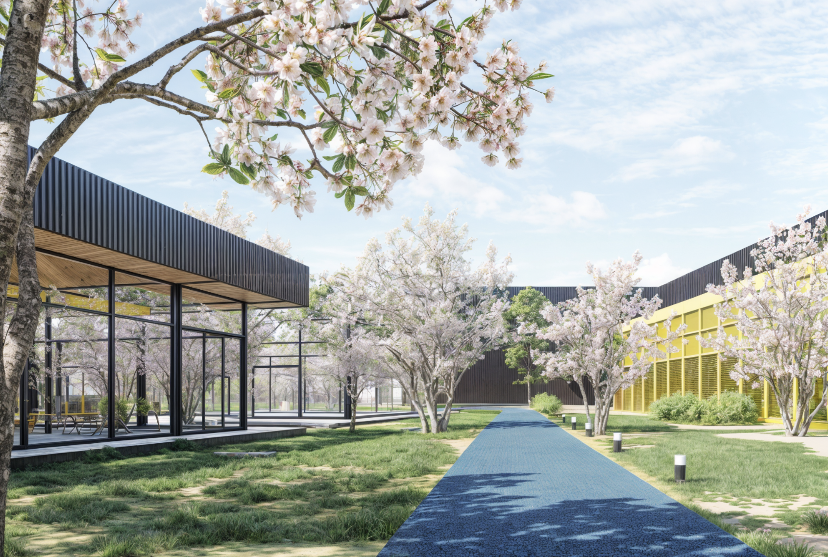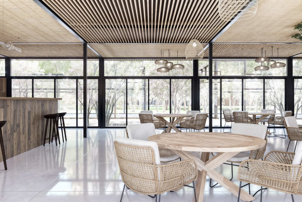 El complejo contará con un amplio sector parquizado con parrillas, juegos para niños y una senda peatonal que lo recorrerá por completo. Además, se incluirán espacios para kinesiología, nutrición y otras especialidades, junto con dormis, un bar y un showroom.